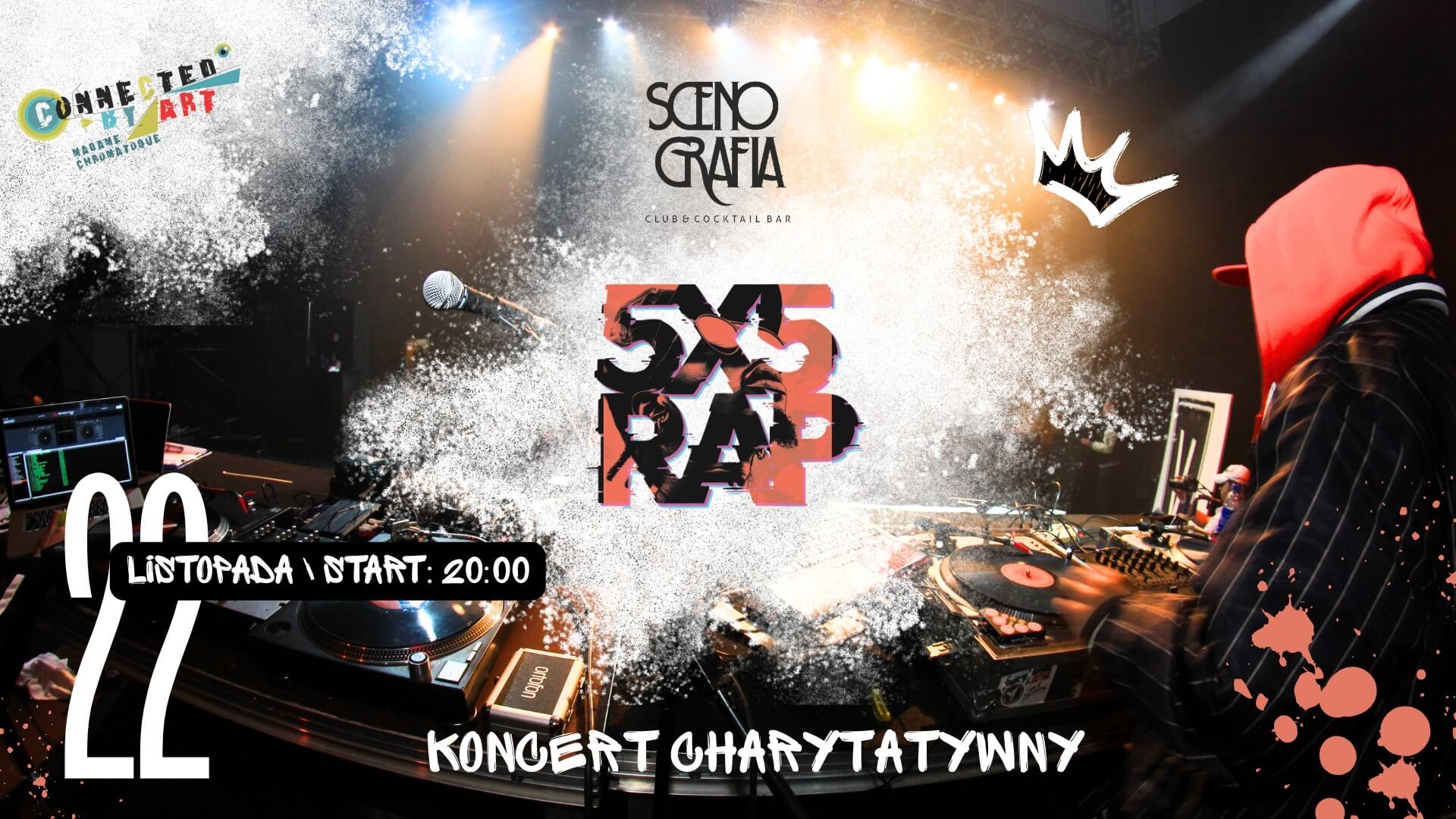 Fundacja Madame Chromatique zaprasza na wyjątkowy koncert charytatywny 5 x 5 RAP! Tego wieczoru na scenie zobaczycie 5 topowych artystów, którzy zagrają dla 5 Fundacji Partnerskich!