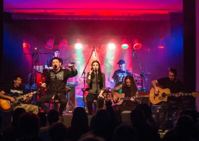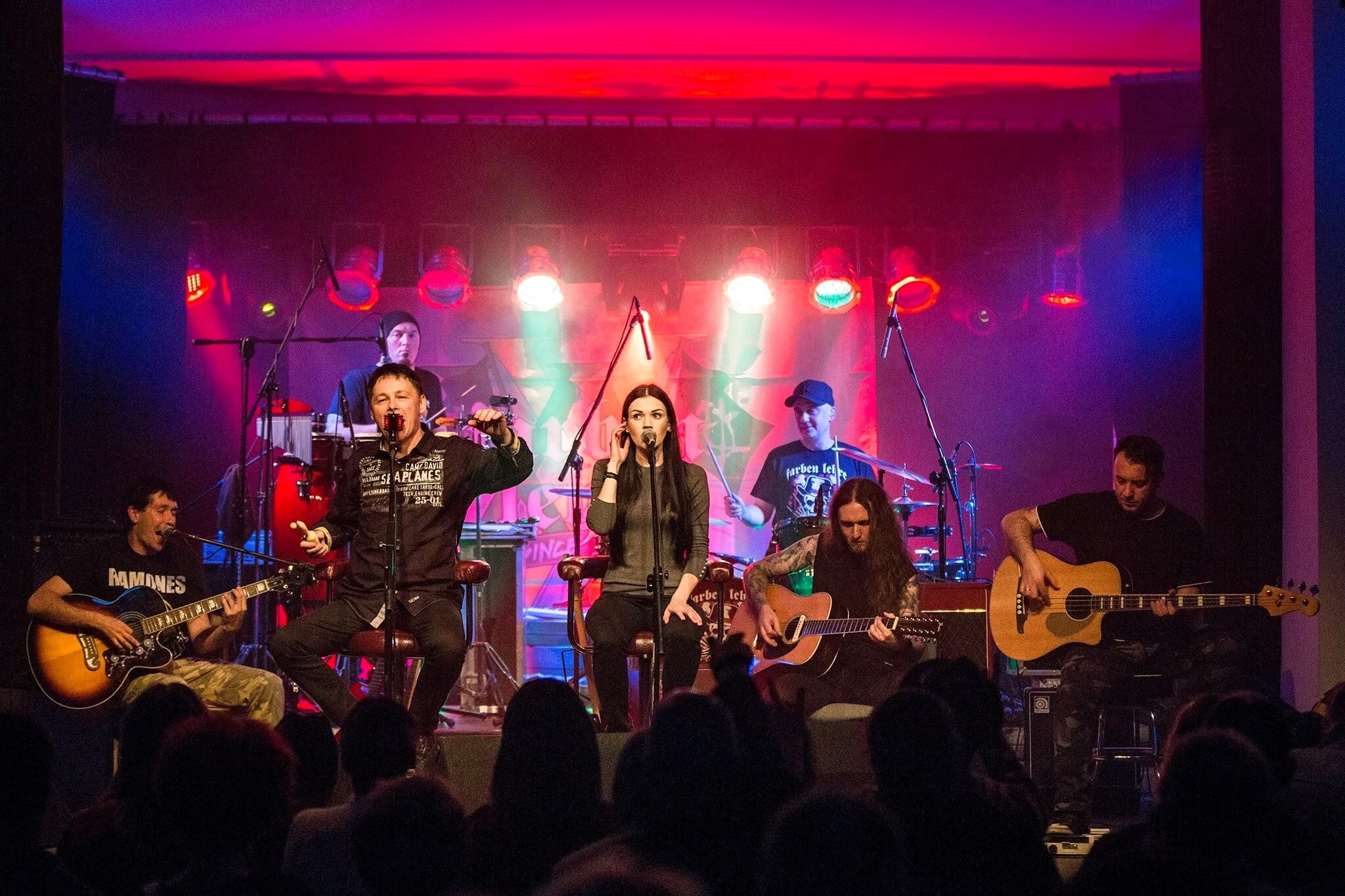 scenie pojawia się siedem osób, a sporadycznie do składu dołączają zaproszeni goście. Zespół