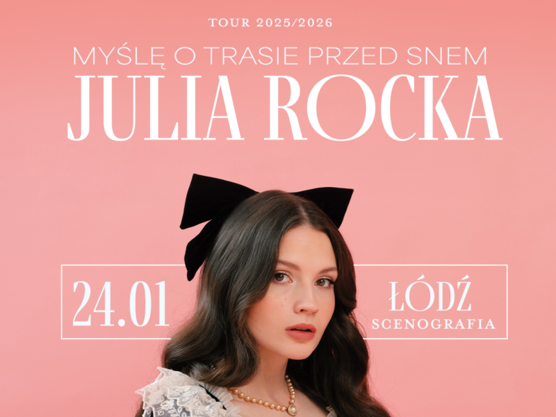 Julia Rocka – 24.01.2026 Archiwum Julia Rocka – Myślę o Trasie Przed Snem Tour 24.01.2026 Łódź, Klub Scenografia 19:00 – drzwi 20:00 – koncert To pierwsza trasa Julii Rockiej po premierze albumu „Gorset”, który wpadł prosto do TOP 5 OLiS. Klimatycznie, emocjonalnie i bardzo blisko – spieszcie się, bilety szybko znikają! https://www.ebilet.pl/muzyka/pop/julia-rocka Julia Rocka Łódź