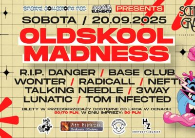 Przygotujcie się na niezapomnianą noc pełną energii i pasji, bo 20 września odbędzie się Oldskool Madness w Klubie Scenografia, gdzie jak za dawnych lat zjednoczymy siły w rytmach hardcore, jungle i oldskool! To będzie wyjątkowe wydarzenie, podczas którego 6 topowych producentów z Łodzi zaprezentuje swoje autorskie sety, a 3 DJ-e zaserwuje najcenniejsze winylowe perełki, które porwą nas w wir euforii. Celebrujemy nie tylko muzykę, ale również talent i kreatywność, które powracają z nową energią w naszym mieście. To więcej niż impreza – to święto, które łączy pokolenia i przypomina nam o magii tanecznych nocy sprzed lat. Bądźcie z nami, bo w muzyce oldskool historia wciąż się pisze!
