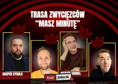 Przygotujcie się na wieczór pełen śmiechu i niezapomnianych wrażeń, bo Trasa Zwycięzców „Masz Minutę” już wkrótce zagości w Klubie Scenografia w Łodzi! To niepowtarzalna okazja, aby zobaczyć na żywo utalentowanych komików, którzy zaprezentują swoje dłuższe formy sceniczne, w tym Kacpra Sygułę, Kubę Rafalskiego, Marcina Chmiela i Kubę Nycza. Różnorodność stylów komediowych i zaskakujące żarty sprawią, że będziecie bawić się do łez, a ilość biletów jest ograniczona, więc nie zwlekajcie i zarezerwujcie swoje miejsce na ten wyjątkowy wieczór już teraz!