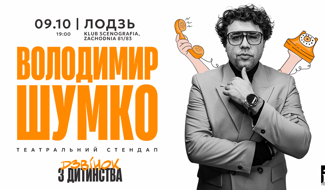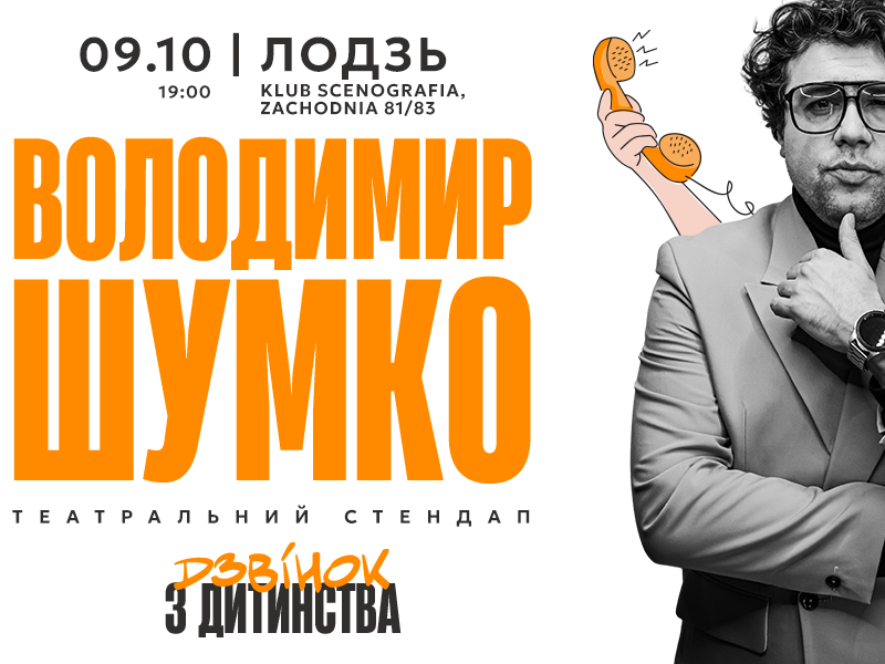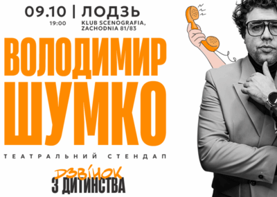 Volodymyr Shumko wystąpi w Łodzi z wyjątkowym projektem – stand-upem teatralnym. 9 października 2025 roku w Klubie Scenografia ukraiński aktor zaprezentuje “Дзвінок з дитинства” (“Telefon z dzieciństwa”). To wydarzenie jest jak powrót do samego siebie lub poszukiwanie zagubionej ścieżki, chodzi o przywrócenie utraconej więzi ze swoim małym ja. “Дзвінок з дитинства” nie tylko zapewni Ci niezapomniane chwile, ale także otworzy i zwróci Ci coś cennego.